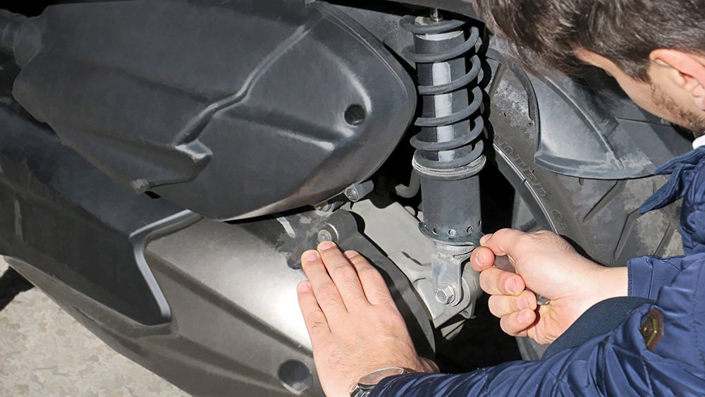 En una moto nueva, salvo que se note que el amortiguador cede con el peso del conductor, o que, por lo contrario, no tiene retorno, no hay que tocar el reglaje hasta que se la haga andar un poco. De esta forma, se evitará trabajar dos veces. Los resortes que suelen venir de serie en las motos tienen una dureza para usuarios de peso medio, entre los 72 y 75 kg.