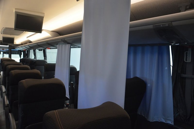 La misma está compuesta por su nueva ubicación de asientos, con tres butacas por fila y dos pasillos, con cortinas individuales con protección antimicrobiana, y un sistema de desinfección de los baños.