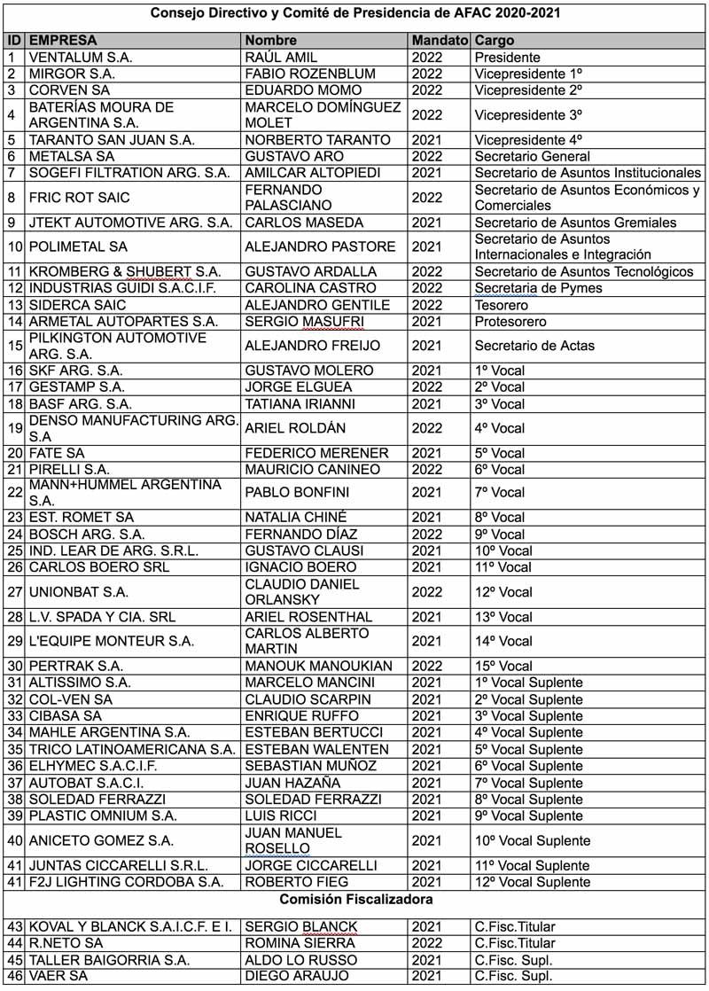 La Asociación de Fábricas Argentinas de Componentes (AFAC) informa que el día miércoles 16 de diciembre se llevó a cabo la Asamblea General Ordinaria, luego de la cual ha quedado constituido su nuevo Consejo Directivo, bajo la presidencia del Ing. Raúl Amil, que ha sido reelecto para un nuevo mandato, por dos años más.
