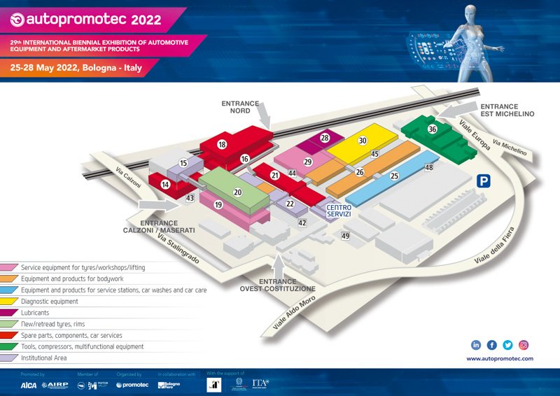 Del 25 al 28 de mayo de 2022 tendrá lugar en la ciudad de Bologna, Italia, la 29a edición de Autopromotec (www.autoprometec.com), feria internacional del aftermarket. Se informa que los espacios expositivos de los sectores de carrocería, lavado de coches y lubricantes están completamente agotados. En otras categorías de productos sólo quedan áreas residuales disponibles.