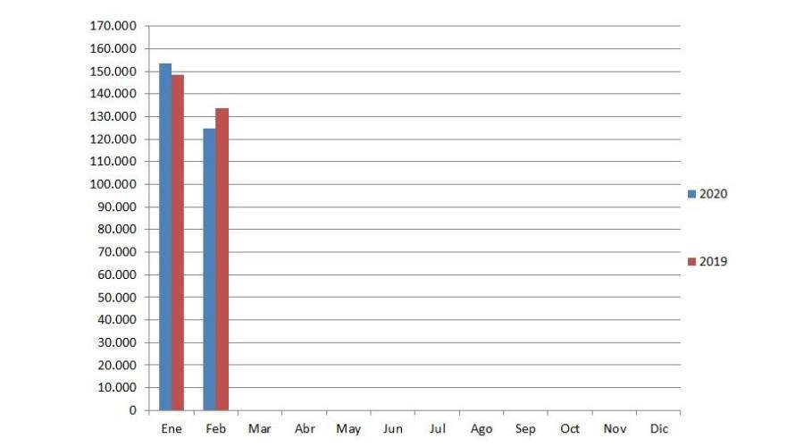 En los 2 primeros meses se vendieron 278.067 unidades, un 1,54% menos que en igual período de 2019 (282.421).