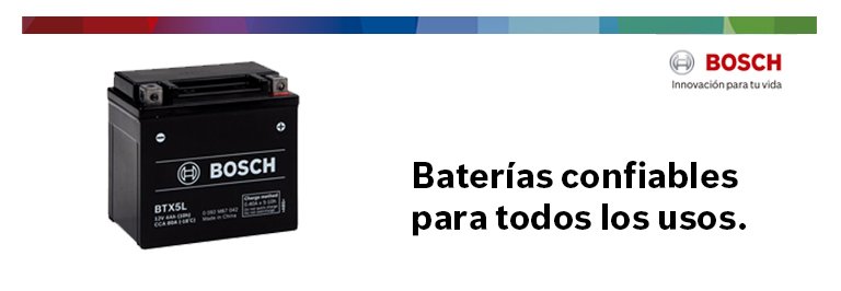 Bosch, líder tecnológico del sector, se dedica a la evolución de baterías de moto desde hace 99 años. A su vez, no solamente se limitó al trabajo con dicha línea, sino que también fue una empresa líder e innovadora en la tecnología de baterías para todo tipo de vehículos: livianos, pesados.