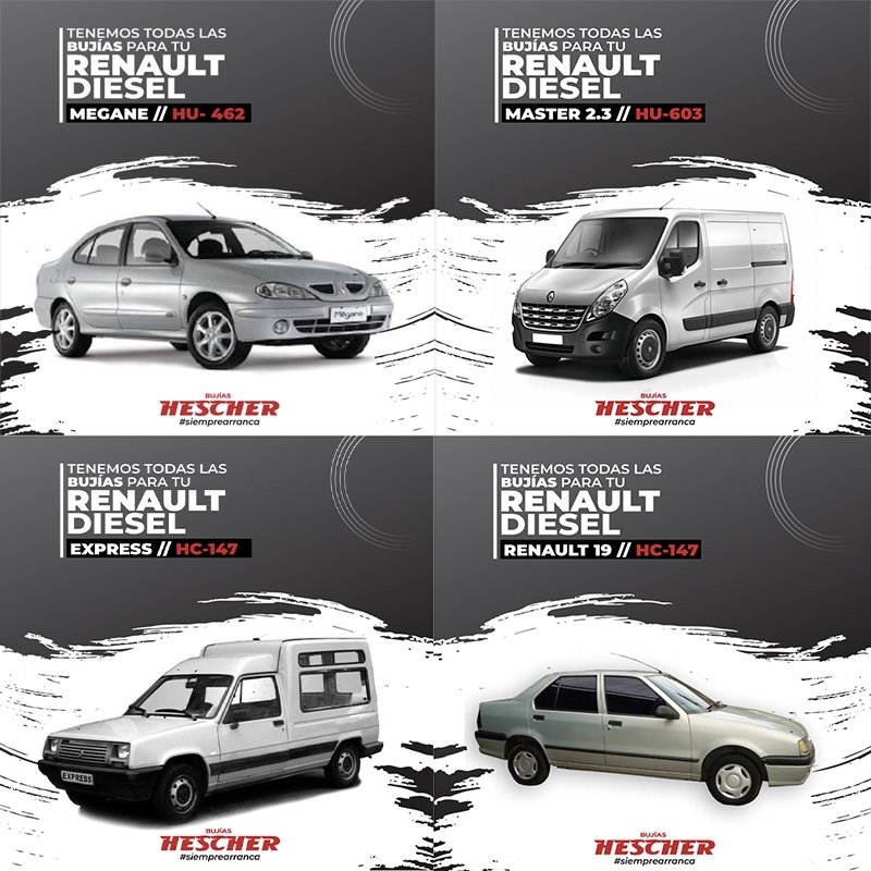 Hescher presenta sus modelos de bujías para modelos de vehículos Renault diésel que transitan las calles argentinas.