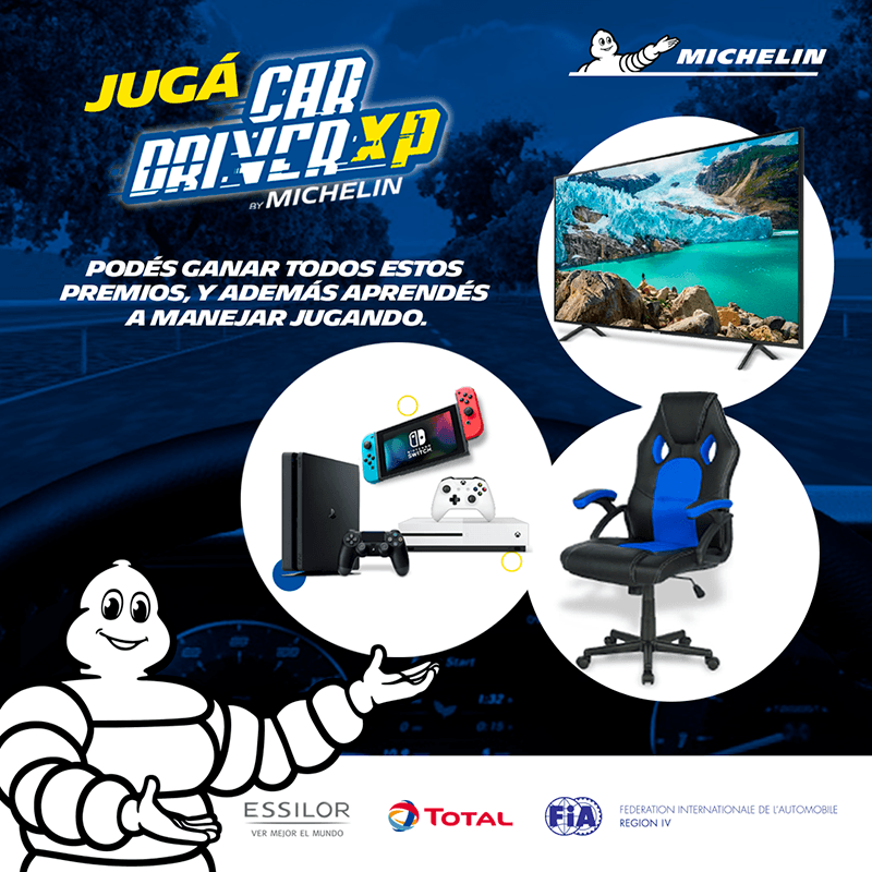 Para participar, sólo se debe ingresar en https://cardriverxp.michelin.com.ar, donde podrán jugar las veces que quieran. En caso de registrarse, formarán parte del ranking de posiciones, liderado por aquellos que obtengan el mayor tiempo en una experiencia. A medida que transcurren las semanas, habrá distintos campeones. En total, se premiará a 10 jugadores semanales, 3 mensuales y sólo 1 se consagrará el ganador de la temporada, que se definirá entre los 3 mejores tiempos de los meses que dura la acción. En cuanto a los premios, habrá desde equipos de tecnología hasta equipamiento para los gamers; mientras que el campeón obtendrá una Smart TV 4K UHD Samsung 65’’.