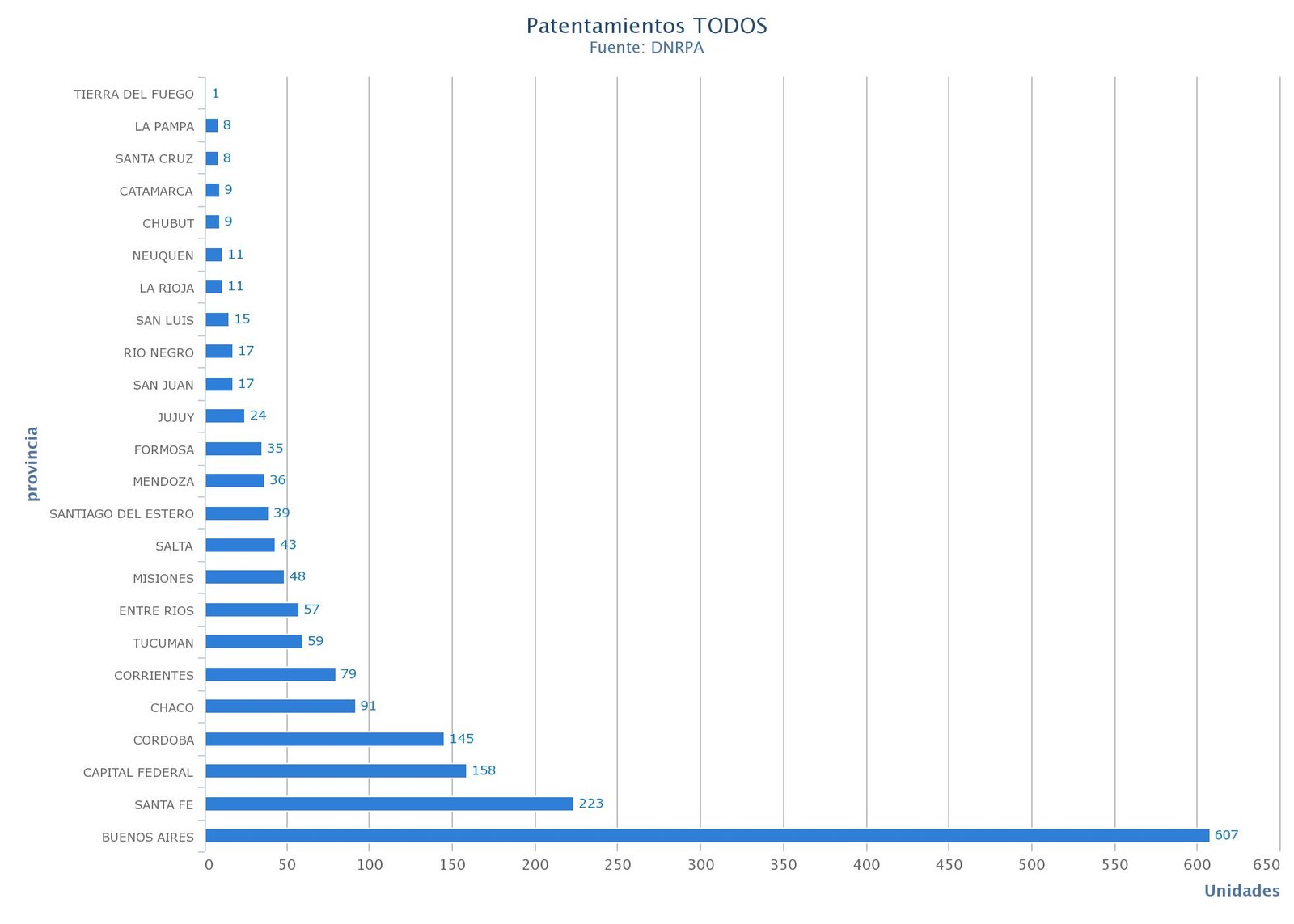 En cuanto a los lugares del país donde más patentamientos se registraron durante el período, encabezan las provincias de Buenos Aires con 5462, Santa Fe con 2031 y Córdoba con 1.719. Las siguen CABA con 1.281 y Chaco con 1.140 unidades.