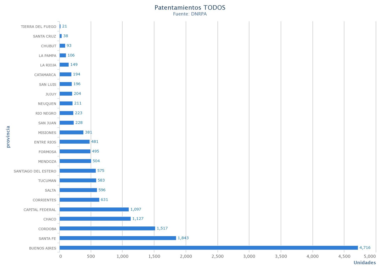 En cuanto a los lugares del país donde más patentamientos se registraron durante el año, encabezan las provincias de Buenos Aires con 88.569, Santa Fe con 36.444 y Córdoba con 29.176. Las siguen Chaco con 21.745 unidades y CABA con 17.452.