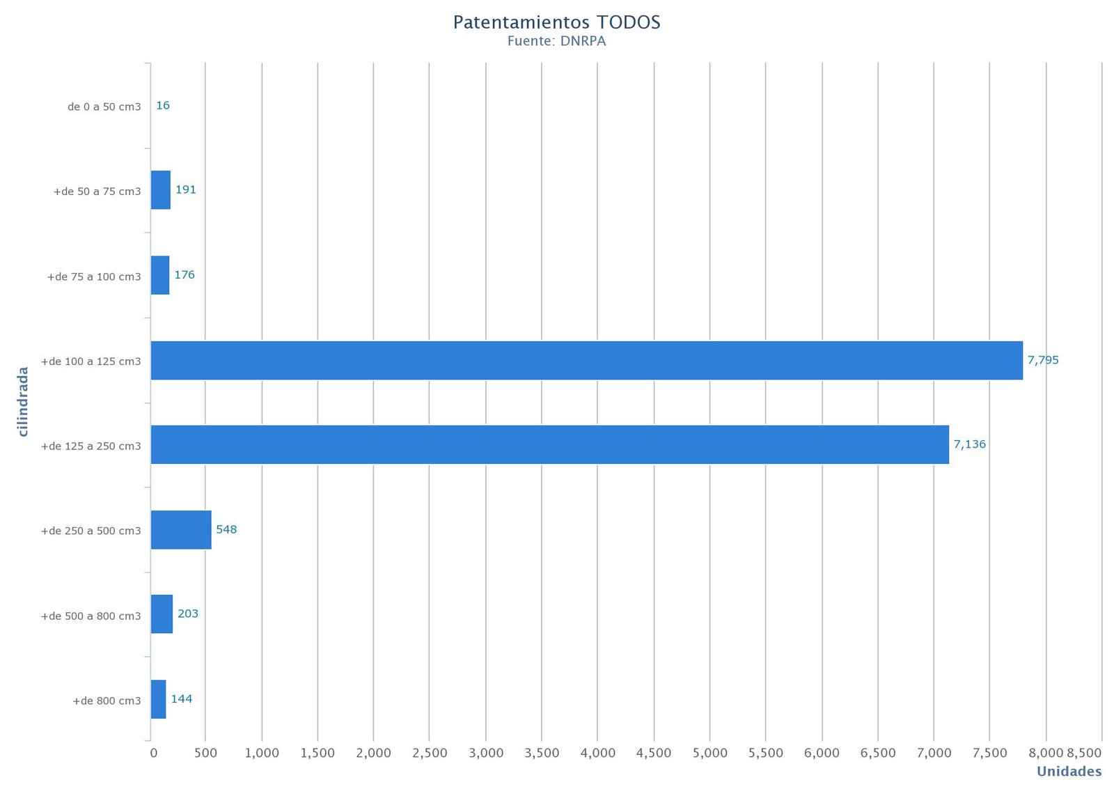 Durante 2019, las motos más vendidas fueron de baja cilindrada. Con 136.091 unidades patentadas, los motovehículos de 110 cc ocupan el primer puesto, seguidos por las motos de 150 cc con 65.802.