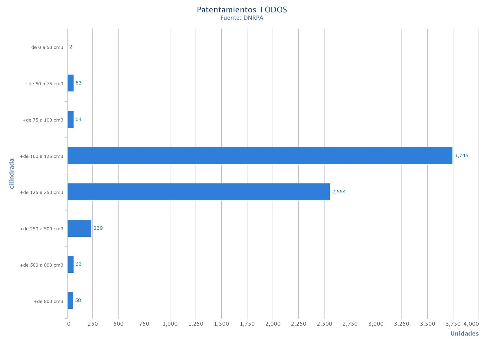 unidades patentadas, los motovehículos de 110 cc ocupan el primer puesto, seguidos por las motos de 150 cc con3.703.Y en cuanto a las categorías lidera ampliamente el Ranking de las más vendidas: las CUB con 10.893unidades, seguidas por las STREET con5.366.