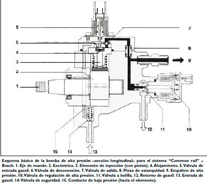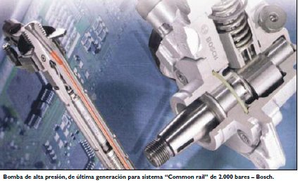 – Por el otro, la nueva bomba “Common rail” –de nuevo diseño– es decir, la más potente de las bombas hidráulicas, fabricada por la casa Bosch. La misma soporta, presiones de inyección extremadamente elevadas, a velocidades y estados de carga intermedios.