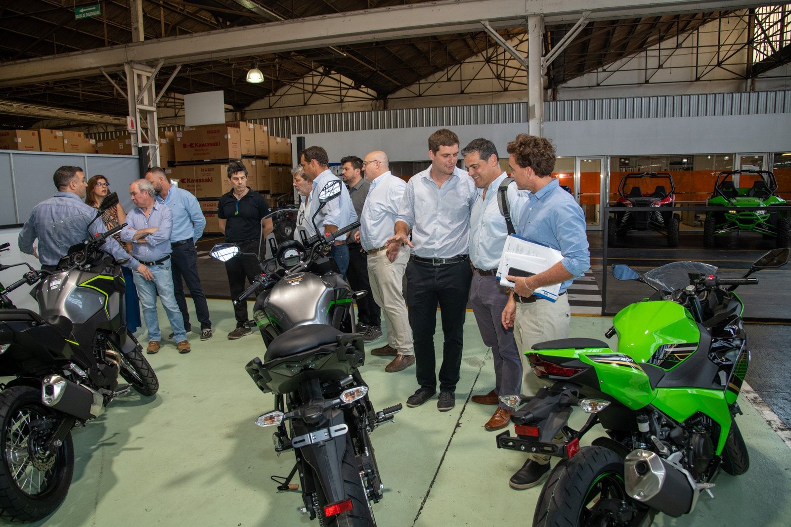 Las autoridades pudieron observar los avances del proyecto de la línea de ensamble de los modelos de motocicletas Kawasaki. Este proyecto es de importancia histórica dado que, luego de 40 años de presencia ininterrumpida en el país, será la primera vez que la marca se produzca a nivel nacional. Además este proyecto ha traído apareado la incorporación de nuevas tecnologías de última generación con el consecuente nivel de inversión que conlleva. El gran desafío ha sido absorber todo el “know how” japonés a través de múltiples viajes al exterior que fueron necesarios y fundamentales para la capacitación y formación de todo el personal afectado al proyecto.