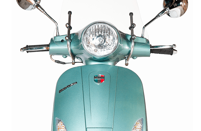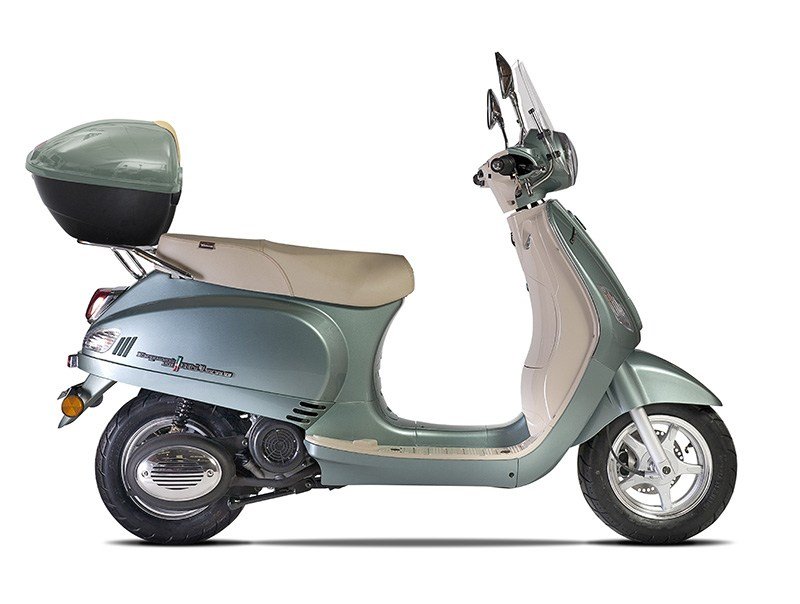El Expert Milano viene equipado con un motor monocilíndrico de 150cc. de 4T y 2 válvulas refrigerado por aire, transmisión automática, arranque eléctrico y por patada y freno delantero a disco.
