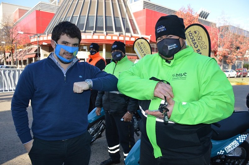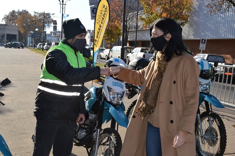 Las unidades que se sumaron a la planta de la Secretaría de Control Urbano son 10 motos Triax 150 nuevas, que fueron exhibidas en la esquina de 25 de Mayo y Casey, donde el intendente, junto al jefe de Gabinete, Diego Milardovich; la responsable de Control Urbano, Silvia Rocha; y representantes de Corven Motos, hicieron una entrega simbólica de llaves a inspectores de la Dirección de Tránsito.