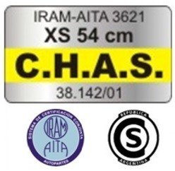 – Si vas a comprar un casco, fijate que tenga la etiqueta de CHAS: Es lo que certifica que se le realizaron las pruebas correspondientes que indica la ley (Norma IRAM 3621). Si no tiene etiqueta de CHAS, no se puede comercializar.