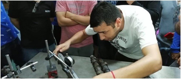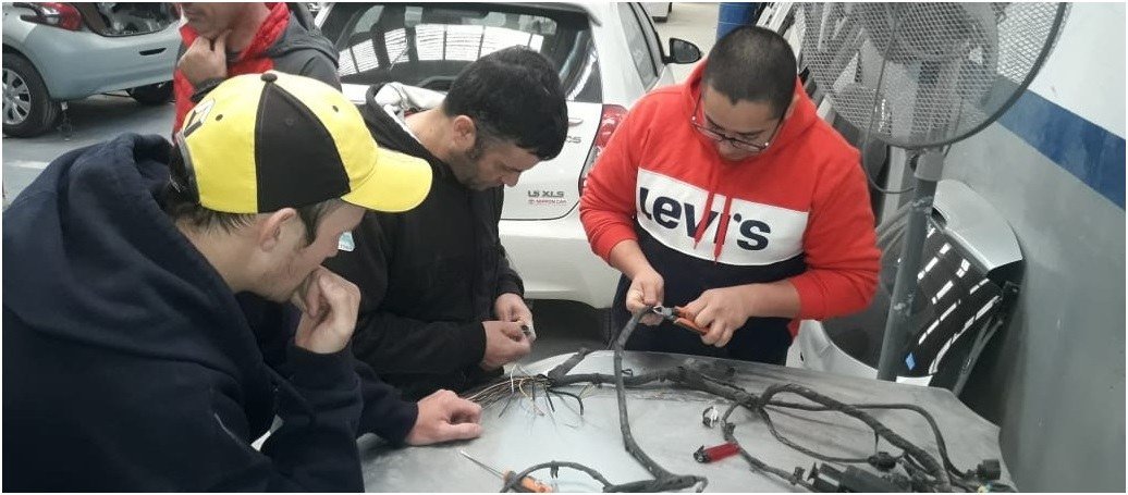 En el marco de los Cursos de Inclusión Social, sobre Motores Nafteros, los alumnos realizando las prácticas, en Rectificación CAPEAR.