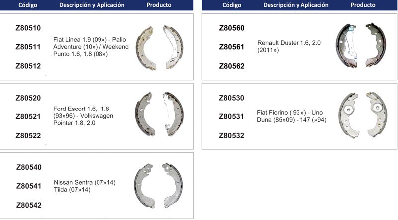 Descripción de producto Armetal: Zapatas de freno