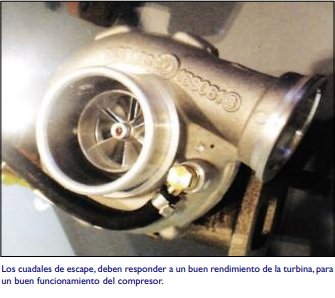 Las ventajas apreciables son, la no realización de costosos estudios y la velocidad operativa del montaje en la producción en serie. En cuanto a la elección del turbo, se debe considerar que en función de la cilindrada del motor a sobrealimentar, se deberá elegir dentro de la gama de turbocompresores propuestos por los fabricantes, y donde las características son los más aptas. Esta adaptación, que existe entre el compresor y la turbina, se remonta al nivel del conjunto “motor-turbocompresor”. El objetivo buscado es sobre todo, que los caudales del escape respondan a un buen rendimiento de la turbina, de manera tal que le permita al compresor, funcionar en una zona también de buen rendimiento. La prioridad deberá darse en el campo de presión del compresor, de modo tal que permita a la turbina funcionar con su sistema de derivación.