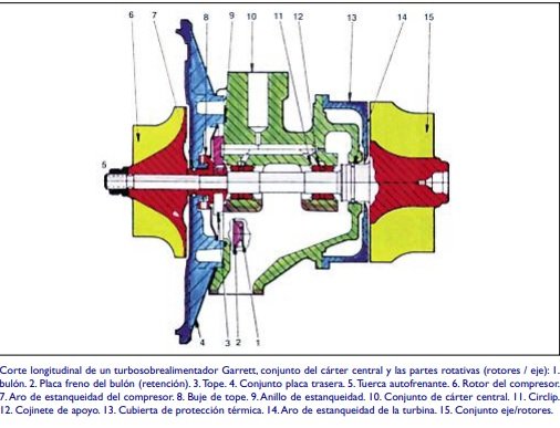 Entre otros componentes técnicos, están los siguientes; Intercambiador de calor o “intercooler”. Mejora de la lubricación y del enfriamiento del motor (circuito de aceite y de agua). Medición y control o monitoreo de los parámetros del motor, en diferentes etapas (Presión y temperatura de los gases de admisión, detección y control de la detonación, etc.), con la posibilidad de seguimiento con dispositivos electrónicos (sensores, actuadores, y calculador de a bordo). Puede apreciarse que el turbosobrealimentador, siempre tiene una nueva etapa de aplicación en los motores térmicos, como conjunto motor-turboestudiado como tal. Esto involucra lógicamente a los motores deportivos y de competición.