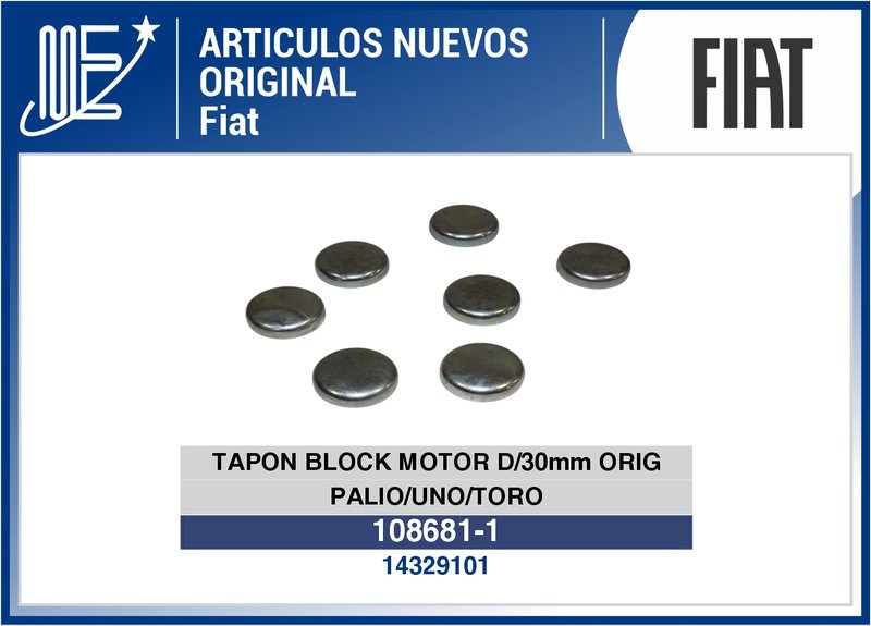 - Tapón de block motor Fiat: compatible con Palio, Uno y Toro. Garantiza ajuste original y confiabilidad.