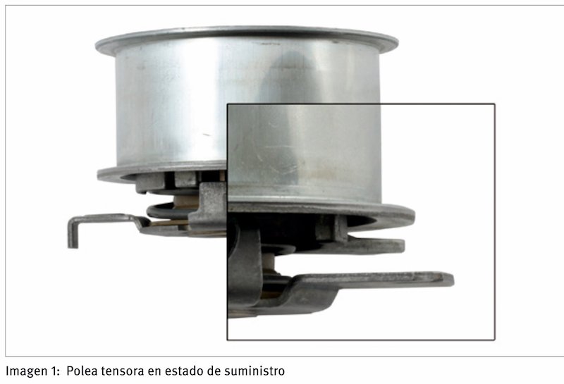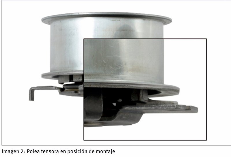 Solo con un correcto montaje de la polea tensora se puede ajustar la correcta pretensión de la correa dentada y, con ello, garantizar los tiempos de control correctos del motor.