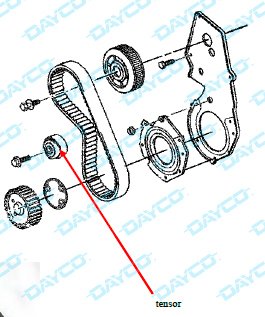 • Monte la nueva correa de distribución en sentido contrario a las agujas del reloj, empezando por el piñón de la bomba de inyección.
