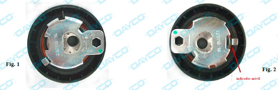 • Compruebe que el indicador móvil del tensor siga estando como en la Fig. 2; en caso contrario, repita el procedimiento de puesta en tensión.