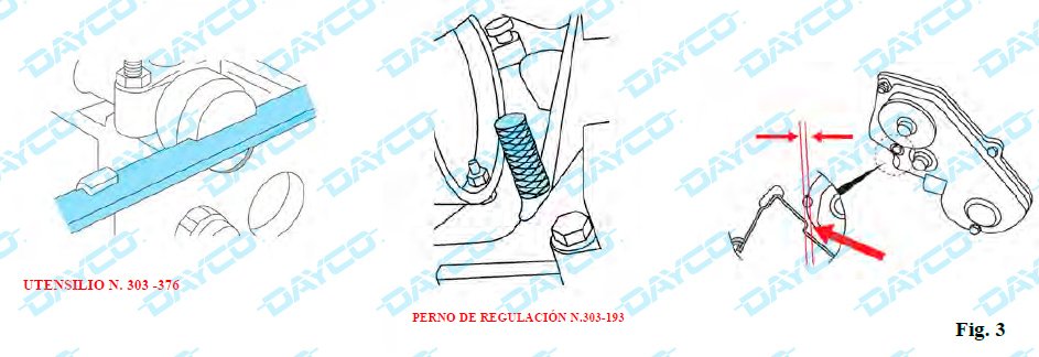 • Si se ha utilizado el nuevo tensor automático de muelle en sustitución de un anterior tensor de muelle, habrá que comprobar el cárter de distribución limando el ángulo interior (0,5 mm.), tal y como se indica en la Fig. 3.