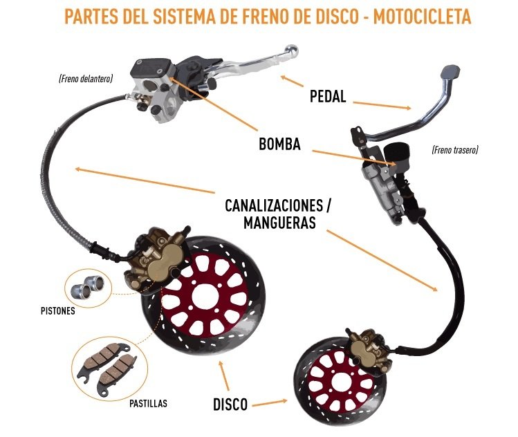 El sistema de frenos de las motos al igual que los vehículos cuenta con varias piezas que son primordiales para su buen funcionamiento las cuales nombramos a continuación: