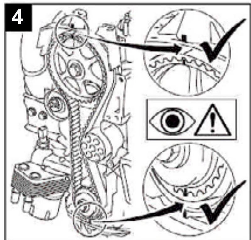 5-Verifique la alineación de las marcas en los engranajes (Fig 4).