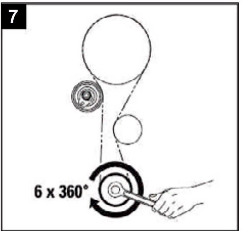 9-Gire el cigüeñal seis veces (6×360°) en sentido horario tiempo (Fig 7).