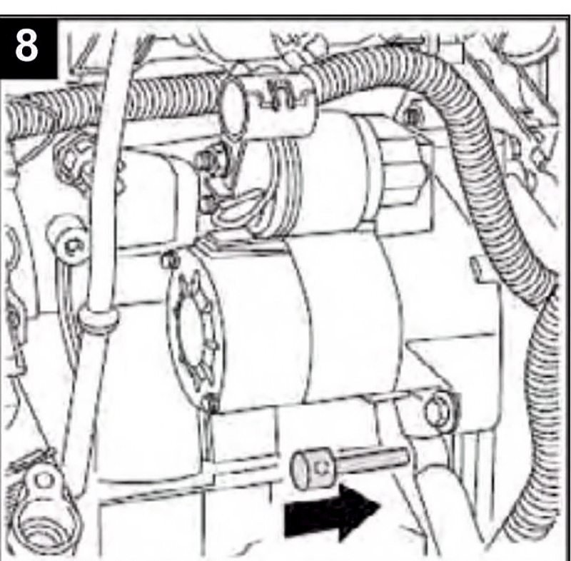 10-Inserte el pasador de bloqueo del volante (verifique el punto del motor) (Fig.8).