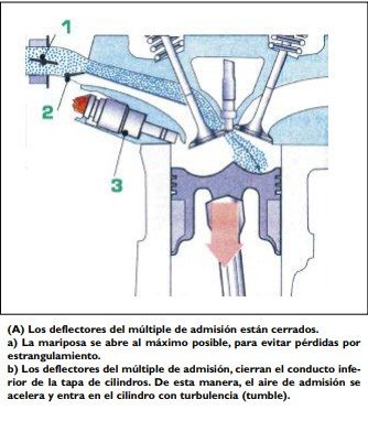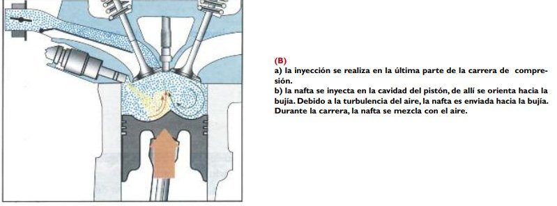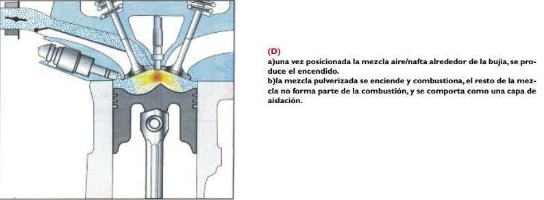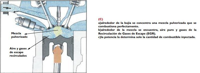 En regímenes de rpm. y estados de carga bajos e intermedios, el motor trabaja con “mezcla pobre”, la nafta se inyecta al final de la compresión, obteniendo así una distribución estratificada de la nafta en la cámara de combustión.
