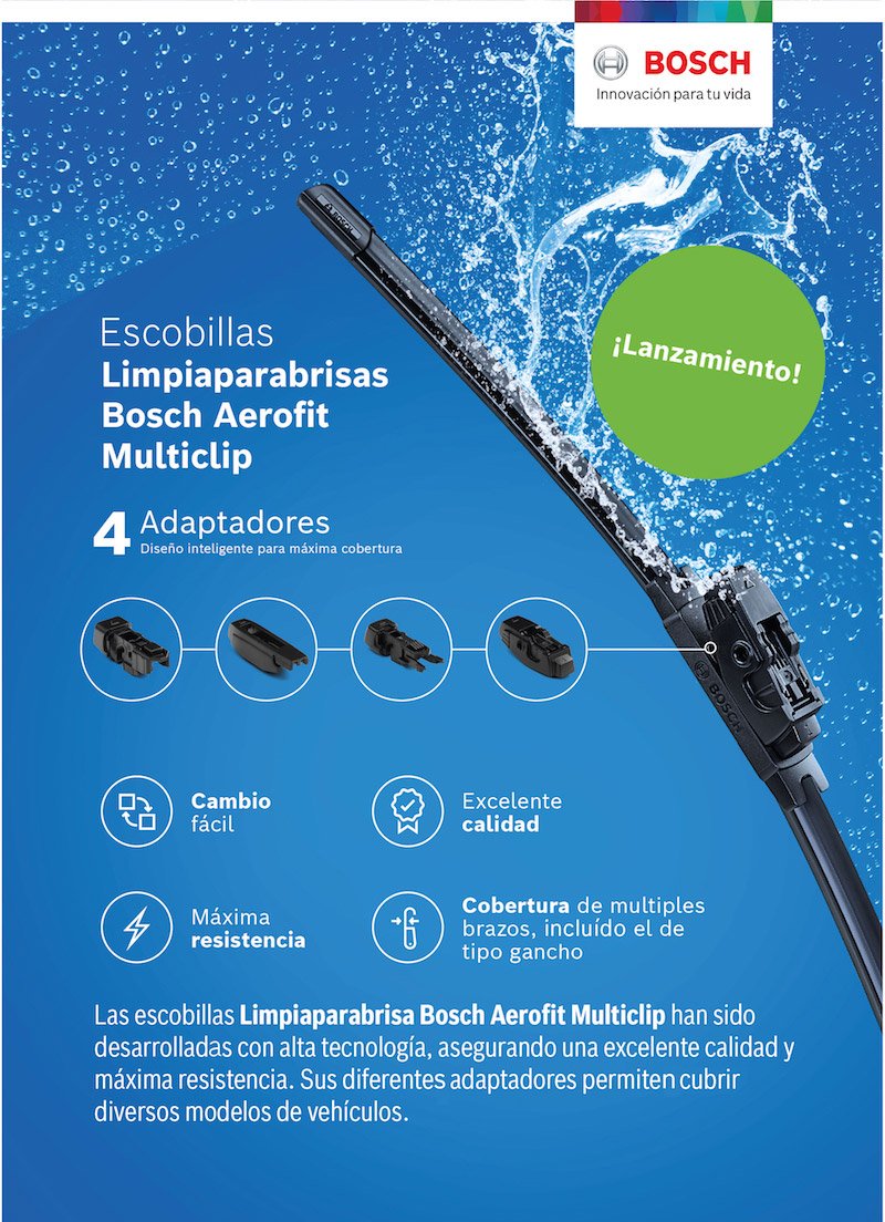 Las escobillas limpiaparabrisas Aerofit Multiclip estarán disponibles en todas las casas de repuestos del país y en tus talleres de confianza.
