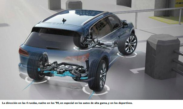 En vigencia desde la década de los 90, los autos con 4 ruedas directrices, se ponen nuevamente en marcha, pero más que nada sobre automóviles de alta gama desde comienzos del 2010, y sobre los autos deportivos. Con esta tecnología se mejora de manera importante el comportamiento dinámico del vehículo. Montar un sistema de dirección en el eje trasero, permite mejorar la “precisión de la trayectoria”, al encarar la parte transitoria o momentánea de la curva, al mismo tiempo que la estabilidad a alta velocidad.