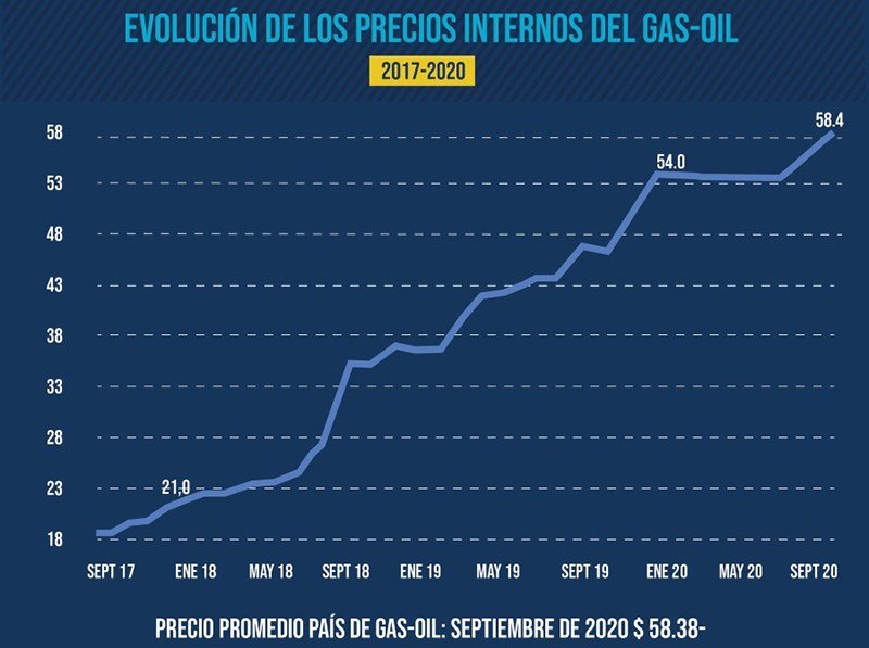 En primer término, se destaca el segundo ajuste del combustible (4,21 %), tanto en los segmentos mayorista como minorista, luego de la suba del mes pasado (4,44 %). Este insumo junto a personal forma parte de las dos terceras partes de la estructura de costos para el transporte de cargas. Mientras en 2019, el combustible registró 12 aumentos, en 2018 fueron 14. En 2019 el aumento del gasoil había alcanzado el 45,6 % en tanto que desde la desregulación del mercado de hidrocarburos a partir del 1 de octubre de 2017, la suba sobrepasa el 200 %.
