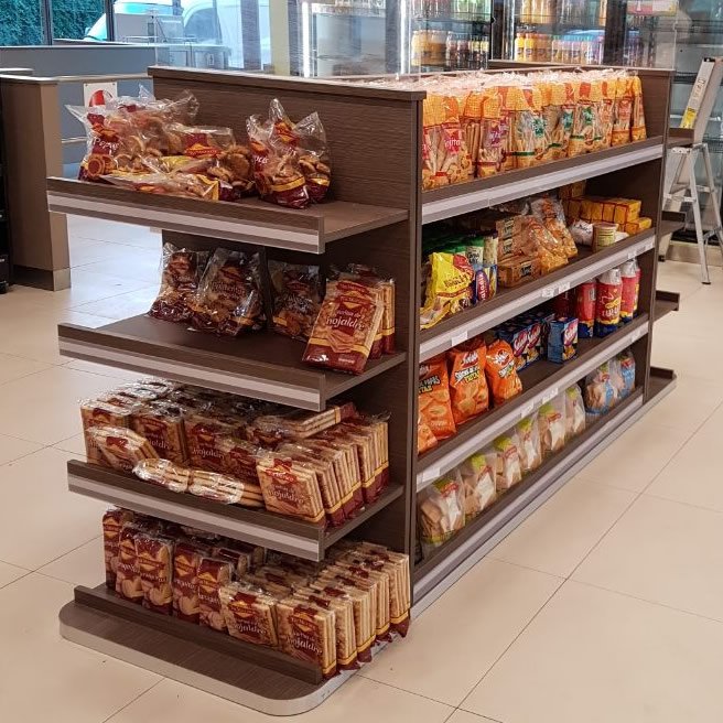 Dentro de las líneas de productos corporativos, Deco News, se especializa en fabricar e instalar mobiliario para minimercados o “shops” de Estaciones de Servicio.