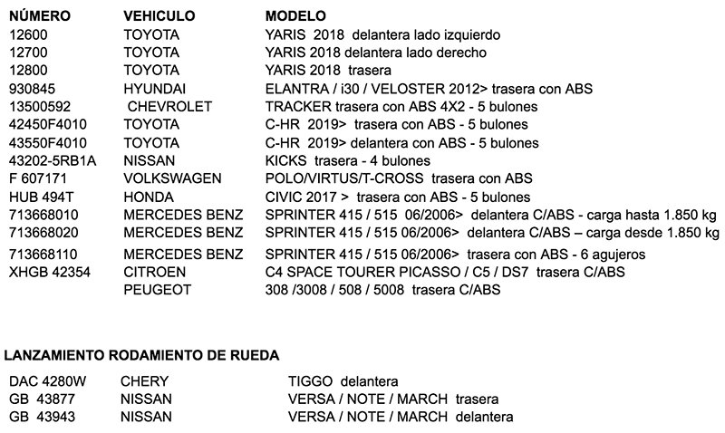 NBC; tiene una posición estratégica de poder ofrecer rodamientos para líneas de vehículos antiguos; y que otras marcas de rodamientos han discontinuado; como así también cuenta con un permanente y constante desarrollo de nuevos tipos de los vehículos recientemente lanzados al mercado argentino. Rodamet, distribuidor exclusivo de la marca, presenta las nuevas incorporaciones de Rodamientos NBC al mercado.