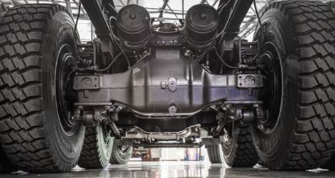 El despeje trasero se debe a que la reducción que generalmente se realiza dentro del bulbo de los ejes traseros en el 32.360 se realiza en 2 etapas. La primera se efectúa en el piñón y corona albergados en el centro de cada eje trasero, y la segunda etapa de reducción se completa con un mecanismo llamado tren epicicloidal, contenido dentro de las mazas de rueda. Este paquete reductor se conoce como “reducción en los cubos”.