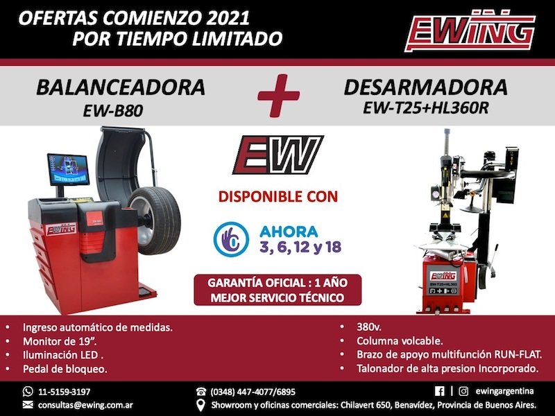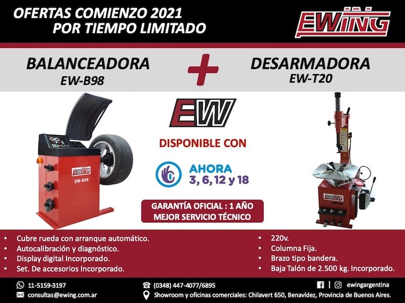 Si se busca una empresa que cuente con lo más completo en equipamiento para armar un Taller Mecánico, Lubricentro o Gomería, ese Proveedor es EWING®, porque tenemos la línea más amplia de elevadores, desarmadoras, balanceadoras, alineadoras, compresores, extractoras, hidráulicos, y mucho más disponible para que puedas seguir creciendo y adicionando servicios a tu negocio.