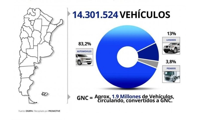 Según un relevamiento de la Asociación de Fábricas Argentinas de Componentes (AFAC), el parque automotor argentino llegó a 14.301.524 vehículos hacia fines de 2019. (Recomendamos ver informe)