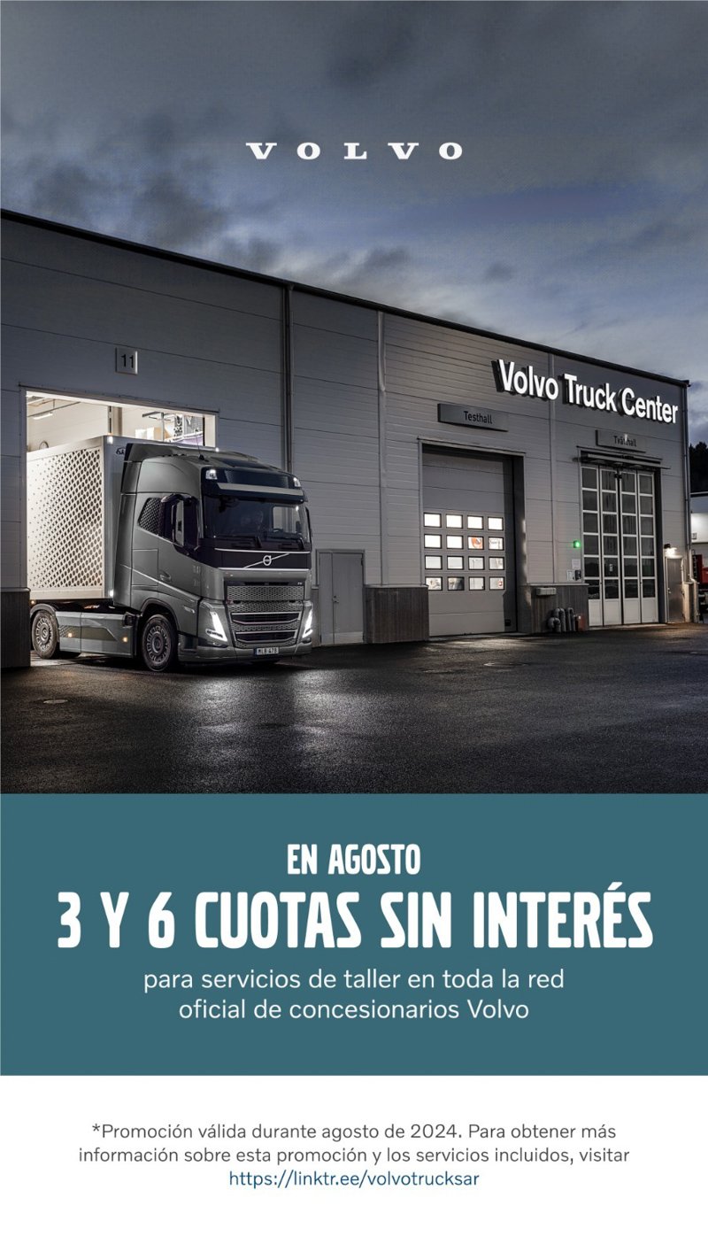 Con el objetivo de garantizar que los camiones Volvo se mantengan en óptimas condiciones, Volvo Trucks y Buses Argentina anunció una promoción especial durante el mes de agosto 2024 donde ofrece la posibilidad de pagar todos los servicios de taller en 3 y 6 cuotas sin interés en su red oficial de concesionarios.