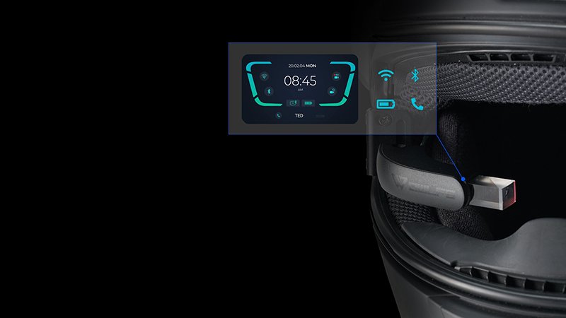 Además, habrá funciones inteligentes que se podrán activar para que se accionen de forma automática, como la que proyecta la imagen de la cámara trasera cuando se inclina el casco ligeramente hacia delante, lo que se entenderá como una intención de realizar un adelantamiento o vigilar el tránsito que viene por detrás.