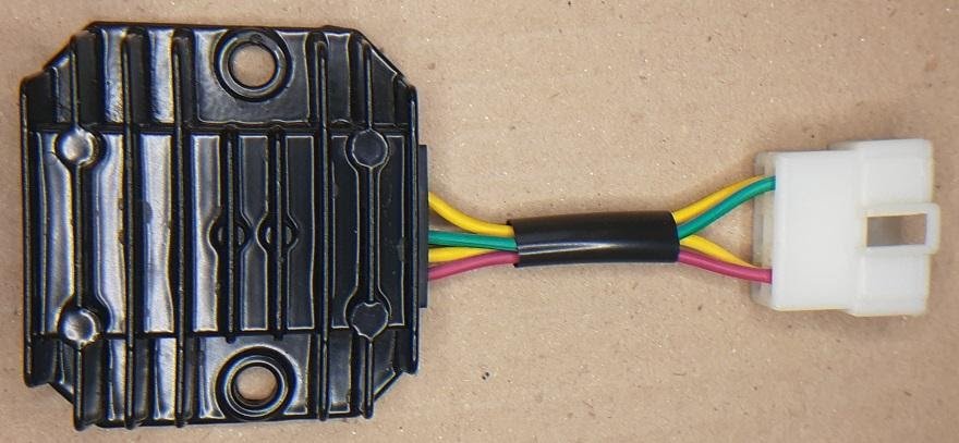 Recordemos que el Regulador de Tensión es el dispositivo electrónico encargado de mantener la batería cargada siempre que la moto esté encendida. Trabaja con la señal alterna generada por el volante magnético de la moto.
