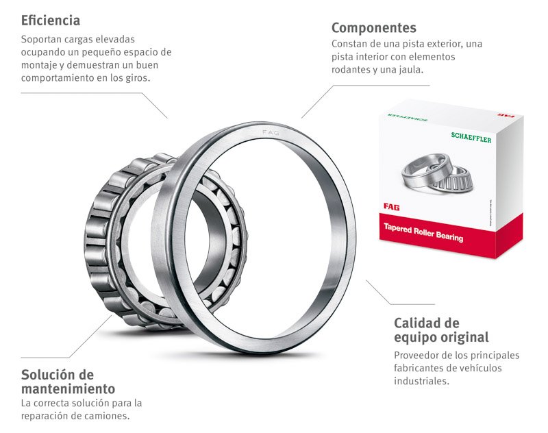 FAG es el líder tecnológico en la producción en serie de unidades de rodamiento de rodillos cónicos y también en el desarrollo de soluciones de mantenimiento especiales para el mercado de los recambios de línea pesada.