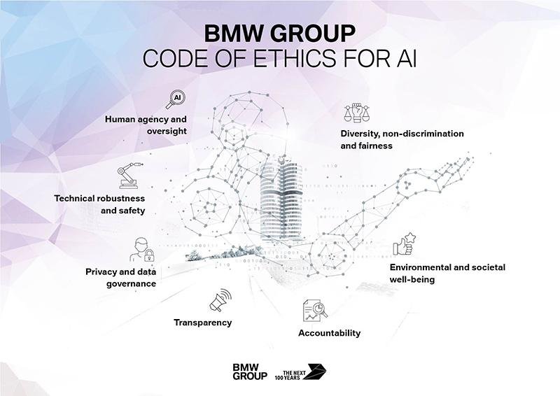 Sobre la base de los requisitos fundamentales formulados por la UE para una inteligencia artificial confiable, BMW Group ha elaborado siete principios básicos que cubren el uso de la inteligencia artificial dentro de la compañía. Estos se perfeccionarán y adaptarán continuamente según sea necesario de acuerdo con la aplicación multicapa de la IA en todas las áreas de la compañía. De esta manera, el BMW Group allanará el camino para extender el uso de la IA y aumentar la conciencia entre sus empleados sobre la necesidad de sensibilidad al trabajar con tecnologías de IA.