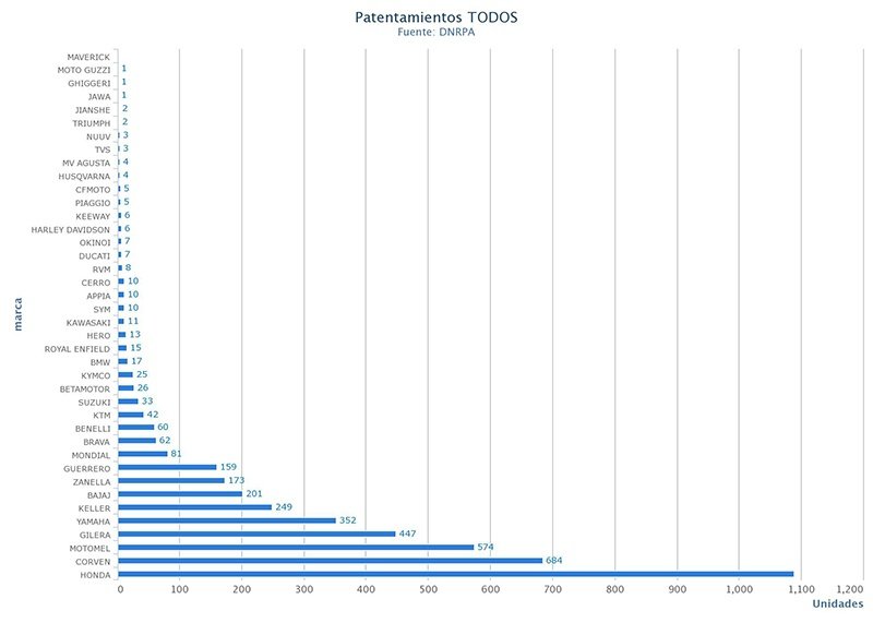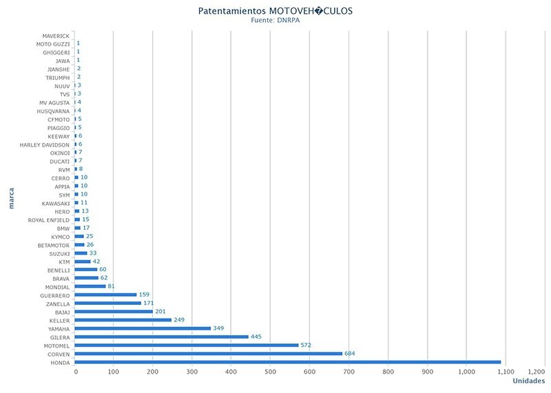 En cuanto a la participación, Honda lideró el mercado con 1.081 unidades seguida por Corven, en la segunda ubicación con 676 y en el tercer puesto Motomel con 562. Por su parte Gilera ocupa el cuarto lugar con 442 unidades y Yamaha cierra el “top five” con 341 motos.