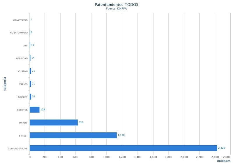 La División Motovehículos de la Asociación de Concesionarios de Automotores de la República Argentina (ACARA) informó que el número de unidades patentadas durante abril fue de 4335, producto de las ventas realizadas antes del comienzo del aislamiento. El acumulado del primeros cuatro meses arroja 71.720 unidades, un 47,7% menos que en el mismo período de 2019, que fue de 137.082