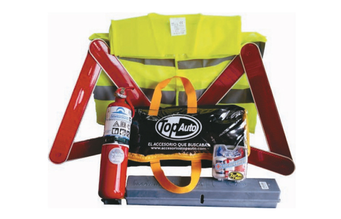 El KIT DE EMERGENCIA TOP AUTO cuenta con bolso reforzado TOP AUTO con cierre, mas un matafuego reglamentario normas IRAM de 1kg 3” o 4”, un chaleco reflectivo amarillo/naranja, dos balizas homologadas TOP AUTO y un botiquín valija plástica. Todo lo que necesita para cumplimentar la LEY 24449 ARTICULO 40 de seguridad vial nuestra empresa se lo ofrece.