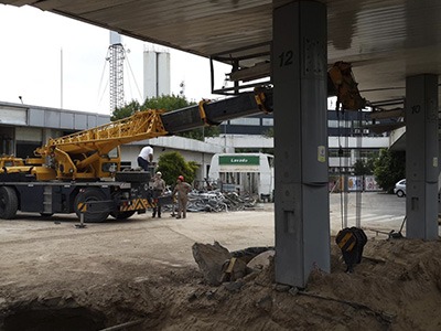 • La extracción de los tanques se inicia con un aviso de obra, donde se informa la fecha del inicio entre otras cosas. Se realiza la rotura del piso de hormigón delimitando toda el área donde se encuentran los tanques de combustible.