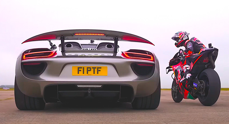 Carwow, empresa especializada en la compra y venta de vehículos, realizó una prueba especial en su canal de Youtube enfrentando al Porsche 918 Spyder con una KTM RC16 de MotoGP al mando del piloto Dani Pedrosa.