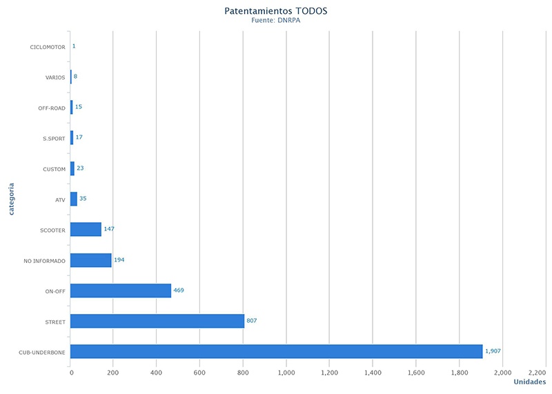 Respecto al informe de CAFAM de noviembre las de baja cilindrada continúan siendo las más vendidas: con 12.042 unidades patentadas de 110 cc y 4.333 de 150 cc. Y en cuanto a las categorías lidera ampliamente el Ranking de las más vendidas del mes: las CUB con 12.875 unidades, seguidas por las STREET con 6.581 unidades.